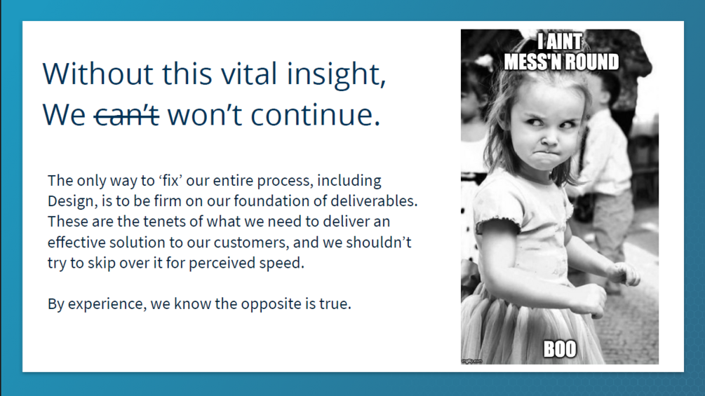 This was never fully adopted at this company, and I resigned shortly after, but I believe it made a significant impact on my own practices and team building, and as such I felt it was an important body of work to share as part of my portfolio.